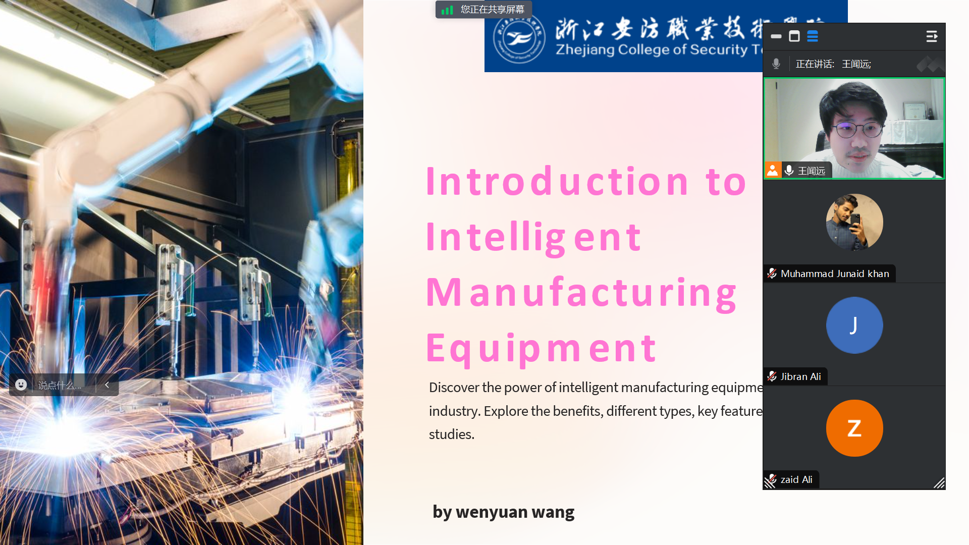 近日,新能源装备学院专任教师王闻远面向中巴丝路学院师生多次开展主题为“工业机器人技术导论”的线上培训。